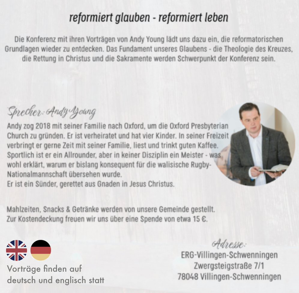 Er ist Mitgründer und Pastor der Evangelisch-Reformierten Gemeinde VS und arbeitet derzeit an seinem Master of Theology (ThM) am Puritan Reformed Theological Seminary (PRTS).